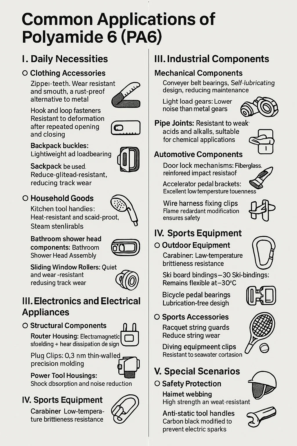 Berikut ini adalah pengenalan aplikasi umum poliamida 6 (PA6):