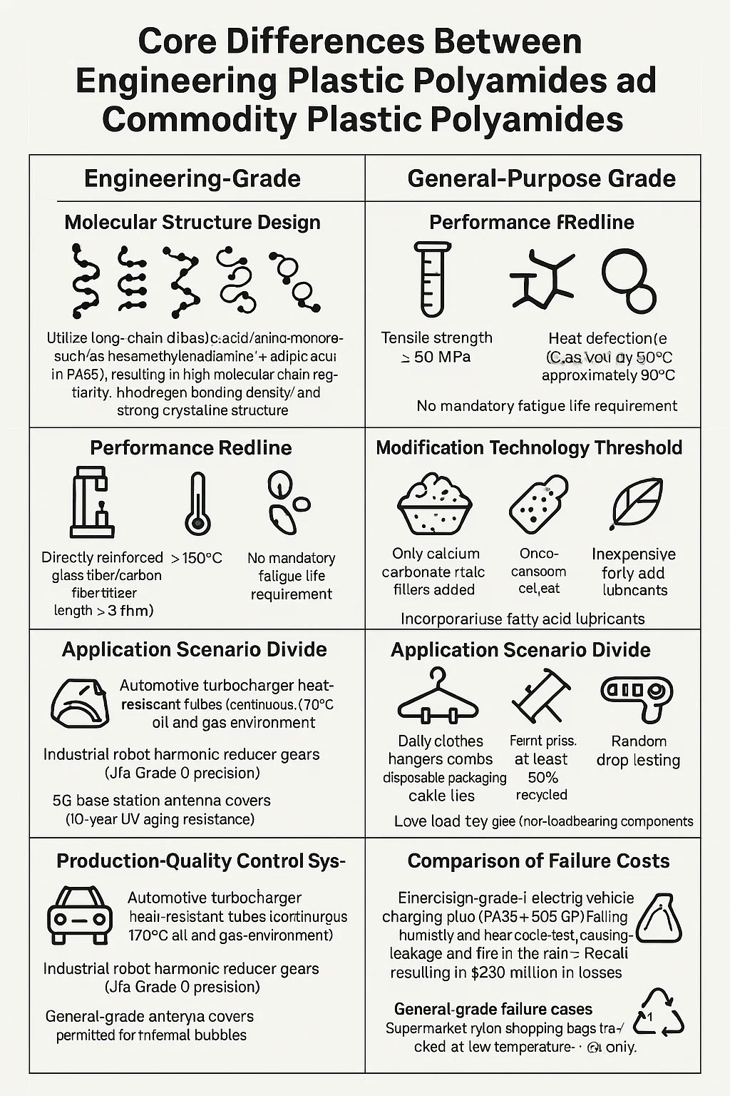 Perbedaan inti antara Rekayasa poliamida plastik dan Polyamides Plastik Komoditas